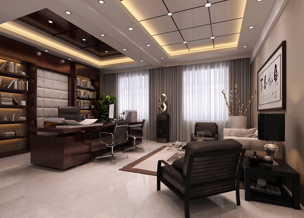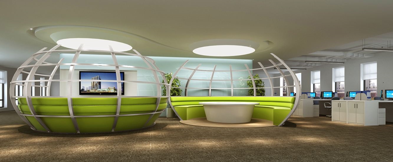 案例說明:本案設(shè)計為突顯建筑開間較舒適之優(yōu)點,設(shè)計師特意設(shè)計了過道各柱體間鑲嵌不銹鋼條及玻璃幕墻上的磨砂條來點綴的裝修主題,同時,地面用拼花色帶打破,與方正而美觀的吊頂上下呼應(yīng);辦公室靠近走道的墻面,為將自然光透入走道,同時又加強(qiáng)其“靈透”感,采用清玻幕墻,幕墻上的磨砂條既打破了玻璃墻面的呆板,又提醒了行人幕墻的存在,防止無意識碰頭、沖撞等類似意外發(fā)生;為辦公室的后續(xù)私密性考慮,其清玻幕墻內(nèi)掛以百葉窗遮擋既可。