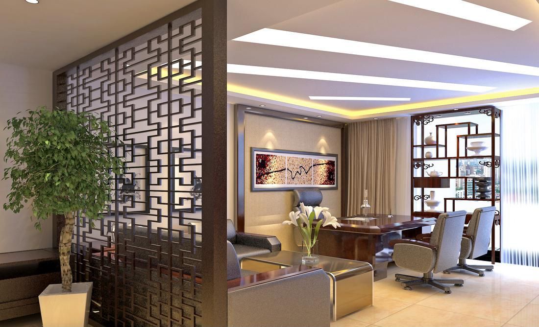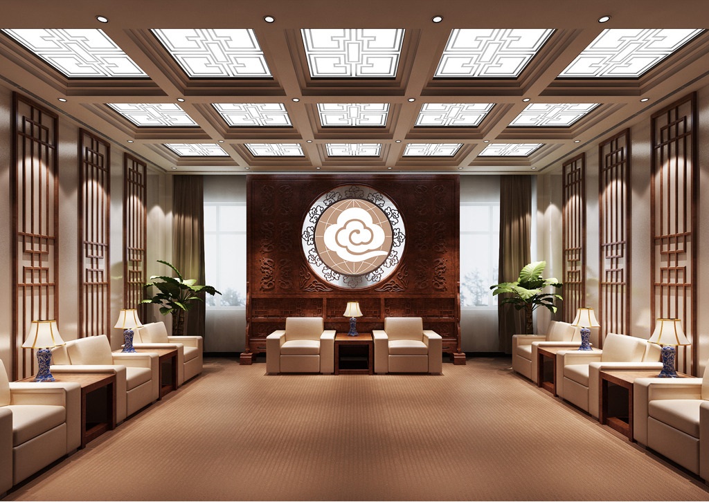 案例說明:本案在設計中采用環(huán)環(huán)相扣的圓弧頂面造型,層層遞近的燈具圍繞圓型屋頂向外拓展,突出空間的立體造型感,也使天花燈飾顯出碧玉般通透潤澤的光影。設計成舞臺平臺的主席臺具備多功能的特點,可兼顧各類舞臺表演及大型會場會議的組織。粗曠沉穩(wěn)的圓形大立柱及方柱,頗具雄偉之勢,但是考慮到其在大型場地內的阻礙性問題,故不將此做再多修飾,僅僅以真石漆的噴涂來達到既不擴大柱圍又美化柱體的作用;地面以座位的安排為向導,輔以簡易直紋拼花來點綴。